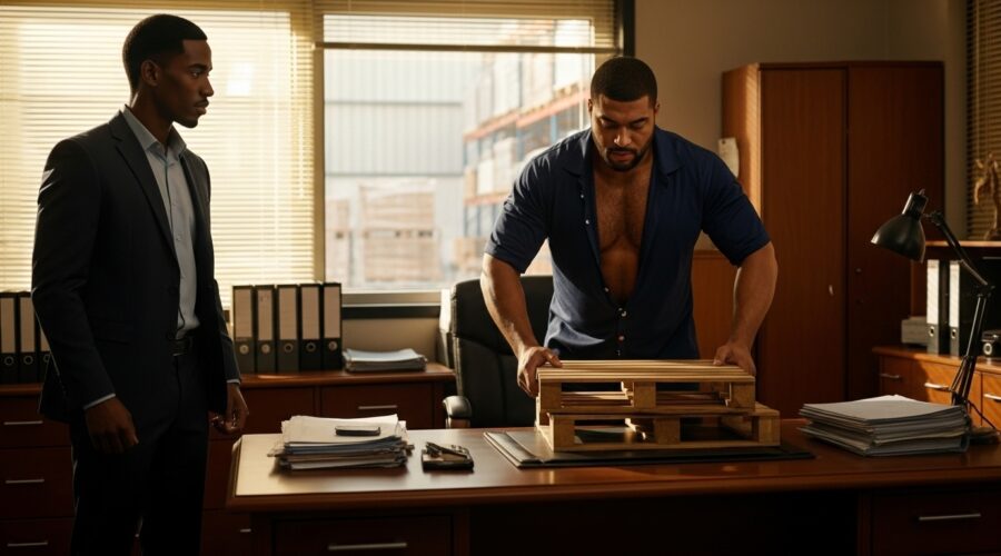 In the shadows of the evening, Darryl finds himself drawn into a web of tension and desire, where the lines between professionalism and primal attraction blur. As he uncovers the mysteries of the warehouse, he also uncovers the depths of his own desires, driven by a need to assert his dominance and uncover the truth. Join Darryl on this journey of self-discovery, where every encounter with Travon becomes a test of will and a dance of power. The night holds secrets, and Darryl is about to uncover the raw, unspoken desires that threaten to consume them both.